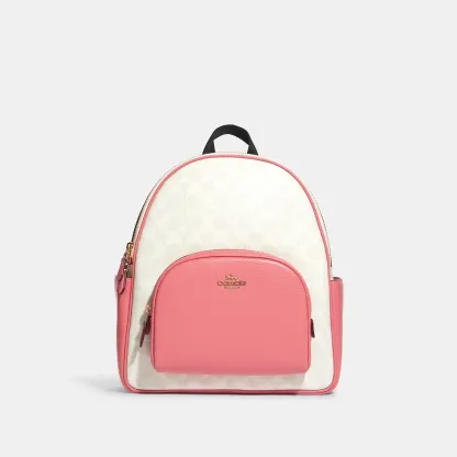 Signature coated canvas and refined pebble leather Inside zip and multifunction pockets Double zip closure fabric lining Handle with 2 1/4 drop Outside zip pocket Adjustable shoulder straps 10 3/4 (L) x 12 1/2 (H) x 4 3/4 (W) Style No. 5671 | Outlet Court Backpack In Signature Canvas - Beige