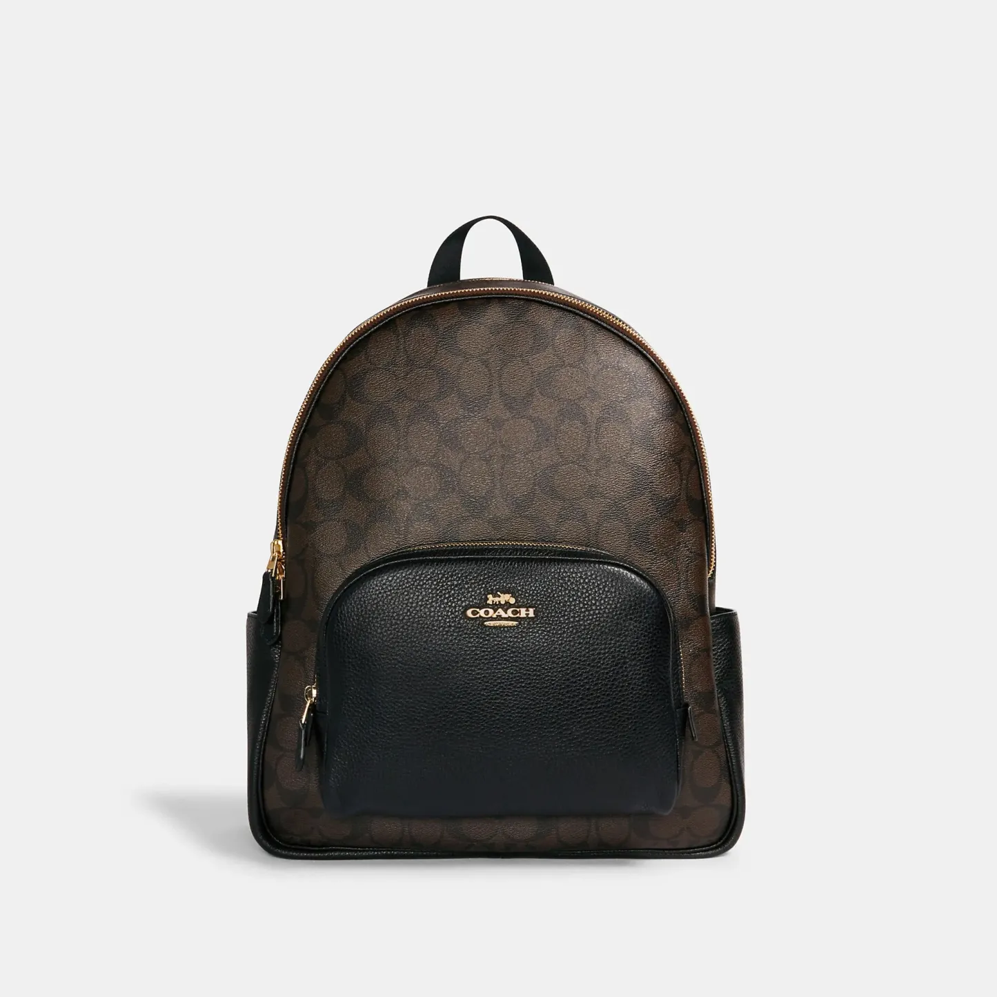 Signature coated canvas and refined pebble leather Inside zip cell phone and multifunction pockets Double zip closure fabric lining Top handle with 2 1/2 drop Outside zip and slip pockets Adjustable shoulder straps 13 (L) x 15 1/4 (H) x 5 (W) Style No. 6495 | Outlet Large Court Backpack In Signature Canvas - Beige