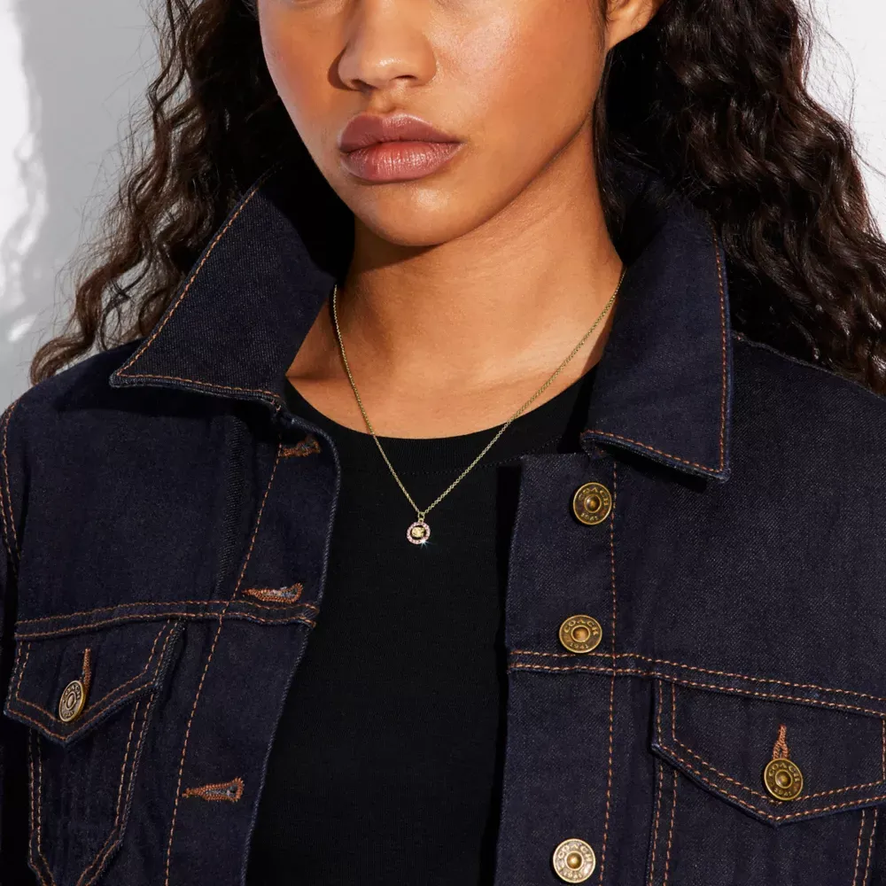 A colorful pick for day or night, this pendant necklace dazzles with a vibrant pavé ring glittering around our Signature. A delicate style, the adjustable clasp lets you wear it long or short.