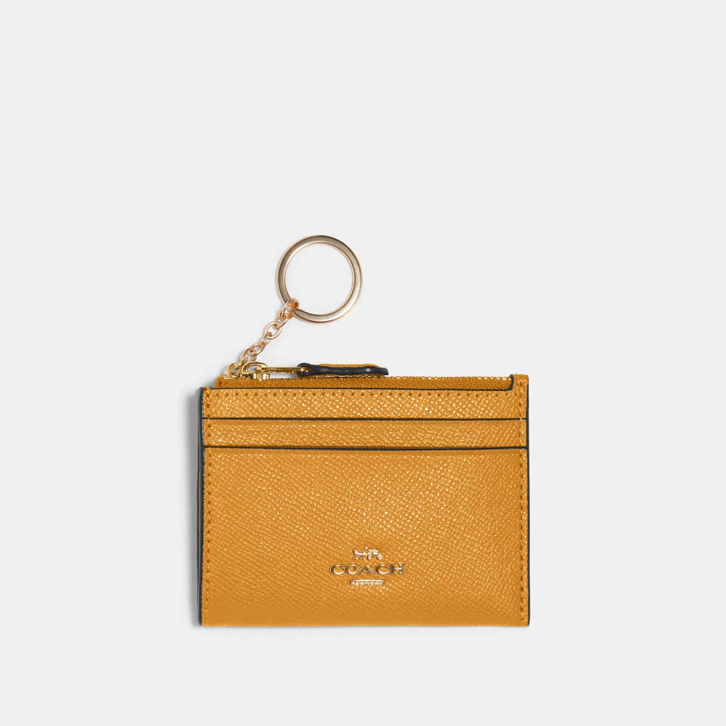 Crossgrain leather Two credit card slots ID window Zip-top closure fabric lining Attached split key ring 4 1/4 (L) x 3 (H) x 1/2 (W) Style No. 88250 | Outlet Mini Skinny Id Case - Yellow