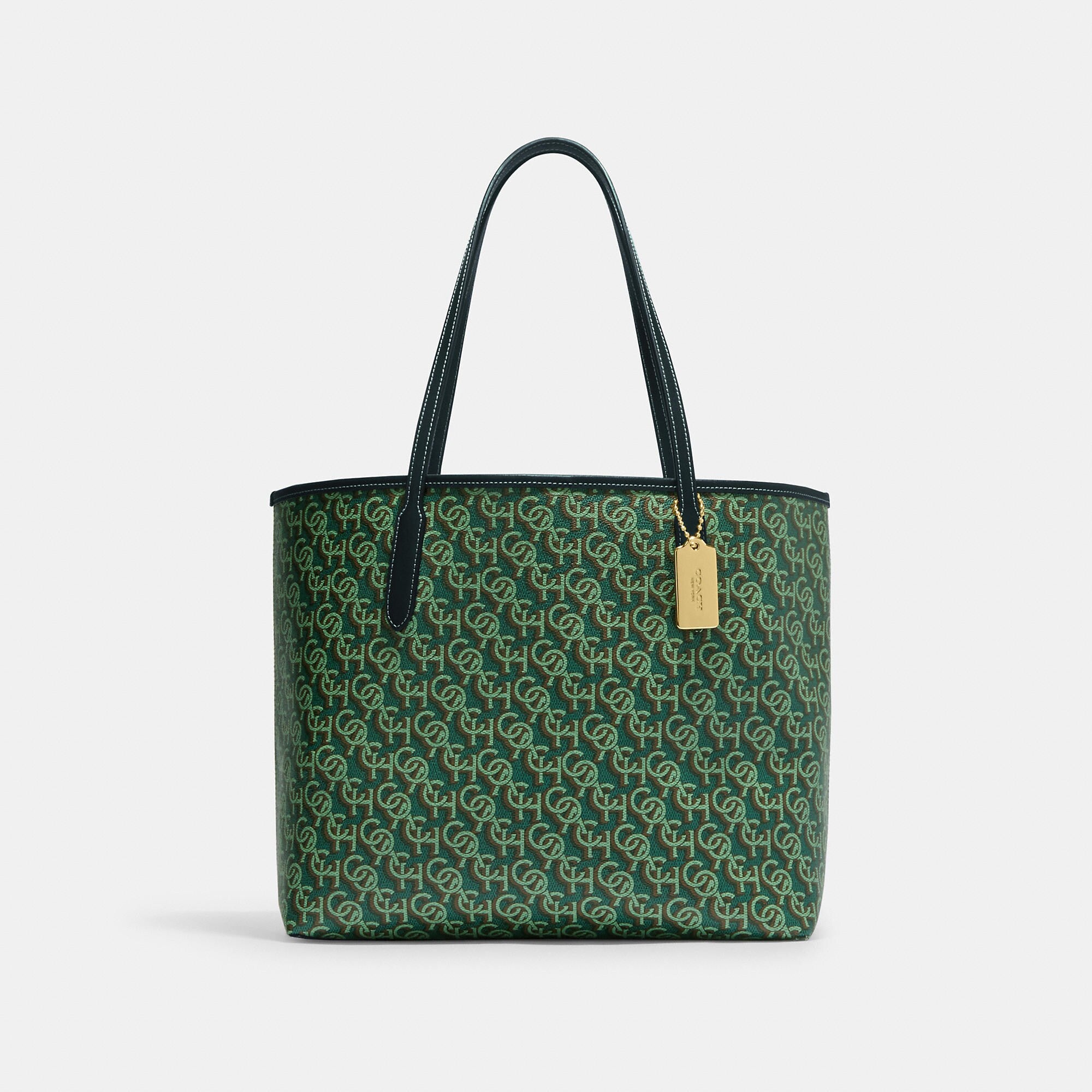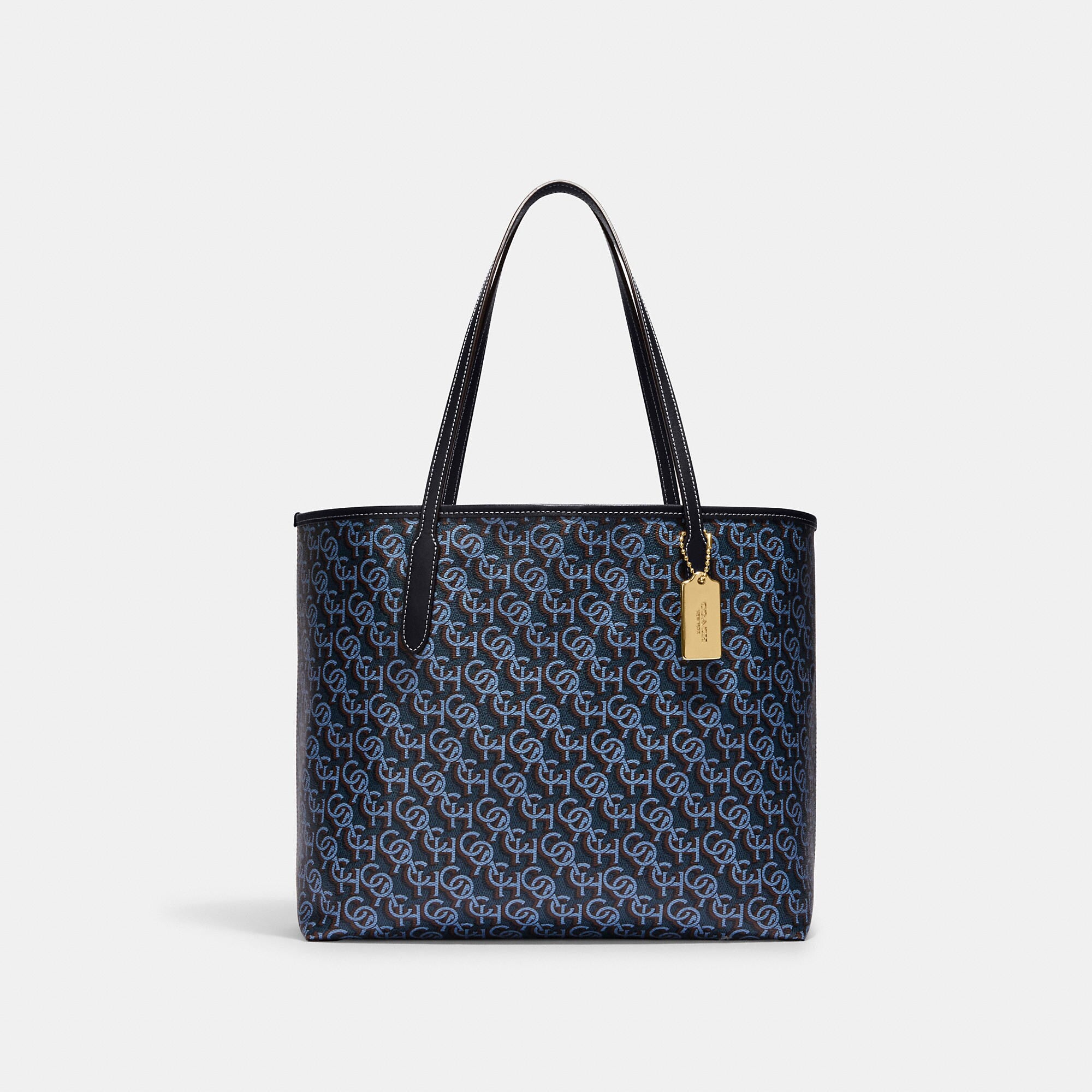 Printed coated canvas and smooth leather Inside zip pocket Snap closure Handles with 10 drop 13 (L) x 11 1/2 (H) x 6 1/4 (W) Style No. CF342 | Outlet City Tote With Monogram Print - Black