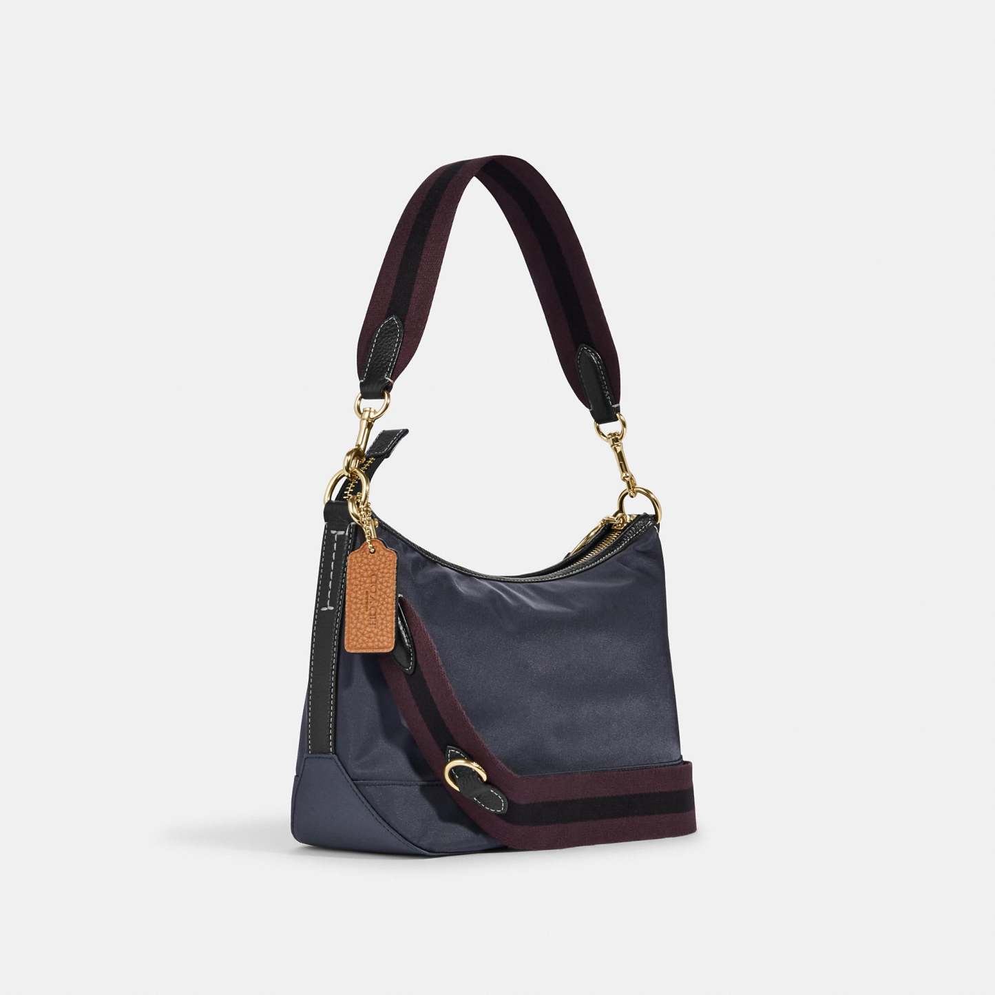 Recycled nylon twill and refined pebble leather Shoulder bag - Inside zip and multifunction pockets Zip-top closure fabric lining Detachable handle with 8 3/4 drop Detachable strap with 17 3/4 drop for shoulder or crossbody wear 10 1/4 (L) x 7 (H) x 4 (W) Removable coin case - Zip closure fabric lining Outside snap pocket 2 1/2 (L) x 3 3/4 (H) Style No. CA205 | Outlet Ellis Shoulder Bag - Blue