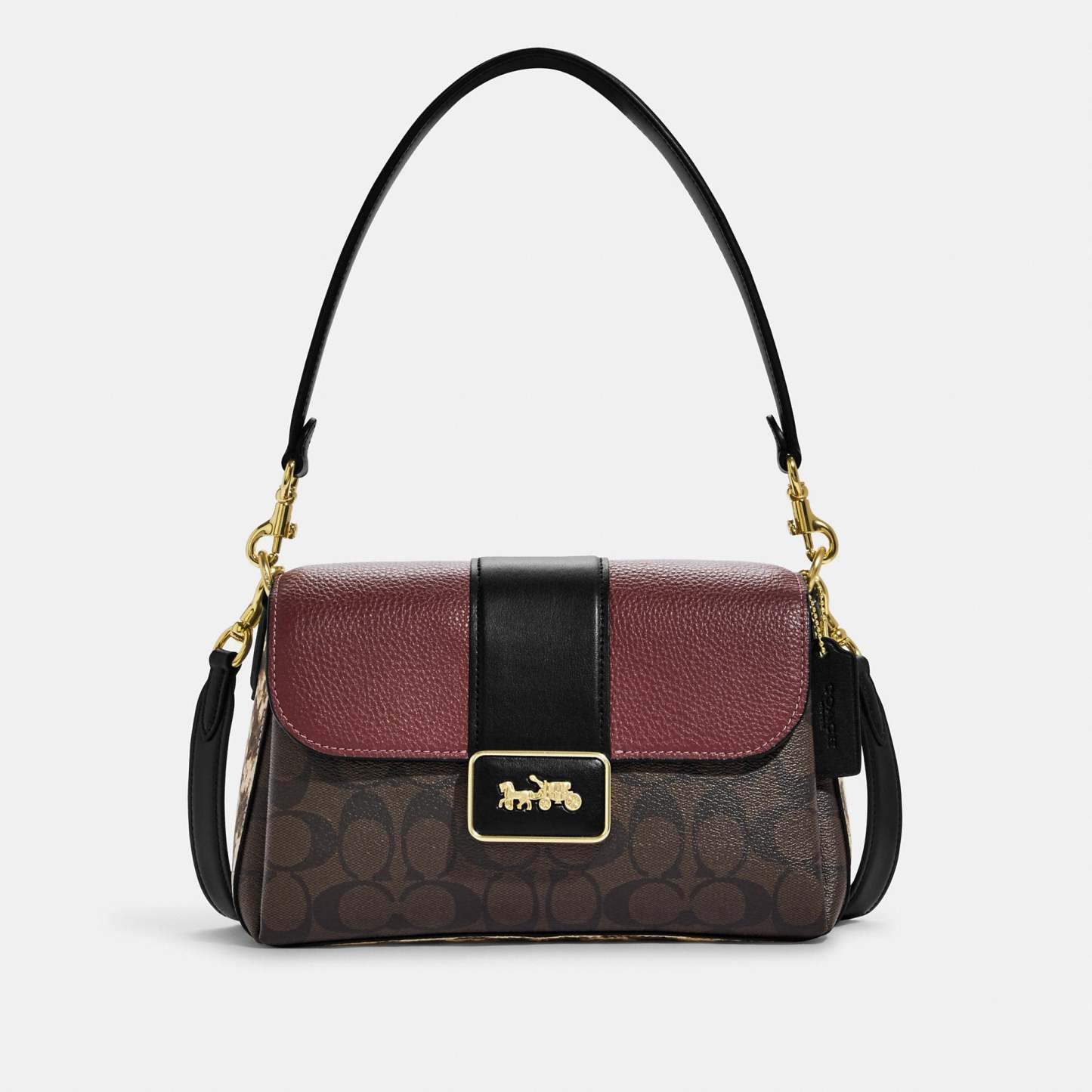 Signature coated canvas smooth leather refined pebble leather and snake-embossed leather Inside multifunction pocket Snap closure fabric lining Detachable handle with 8 1/4 drop Outside open pocket Detachable strap with 21 3/4 drop for shoulder or crossbody wear 10 1/4 (L) x 6 1/4 (H) x 3 1/4 (W) Style No. CC066 | Outlet Grace Shoulder Bag In Signature Canvas - Multi