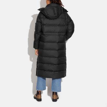 100% polyester Knit rib - 68% polyester 30% polyamide 2% elastane Lining - 100% polyester Fill - 90% down 10% feathers Snap button and zip closures Slip pockets Length - 44 Style No. CB639 | Outlet Long Down Puffer - Black, Size - Small