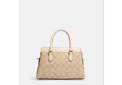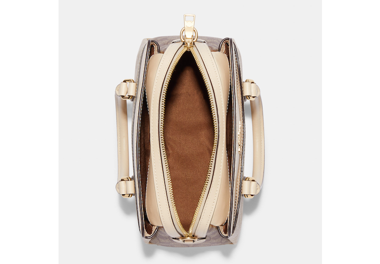 Signature coated canvas and smooth leather Inside multifunction pocket Zip closure fabric lining Side slip compartments Handles with 4 drop Outside open pockets Detachable strap with 21 1/2 drop for shoulder or crossbody wear Four protective feet at base 10 1/4 (L) x 6 3/4 (H) x 4 1/4 (W) Style No. CH503 | Outlet Mini Darcie Carryall In Blocked Signature Canvas - Multi