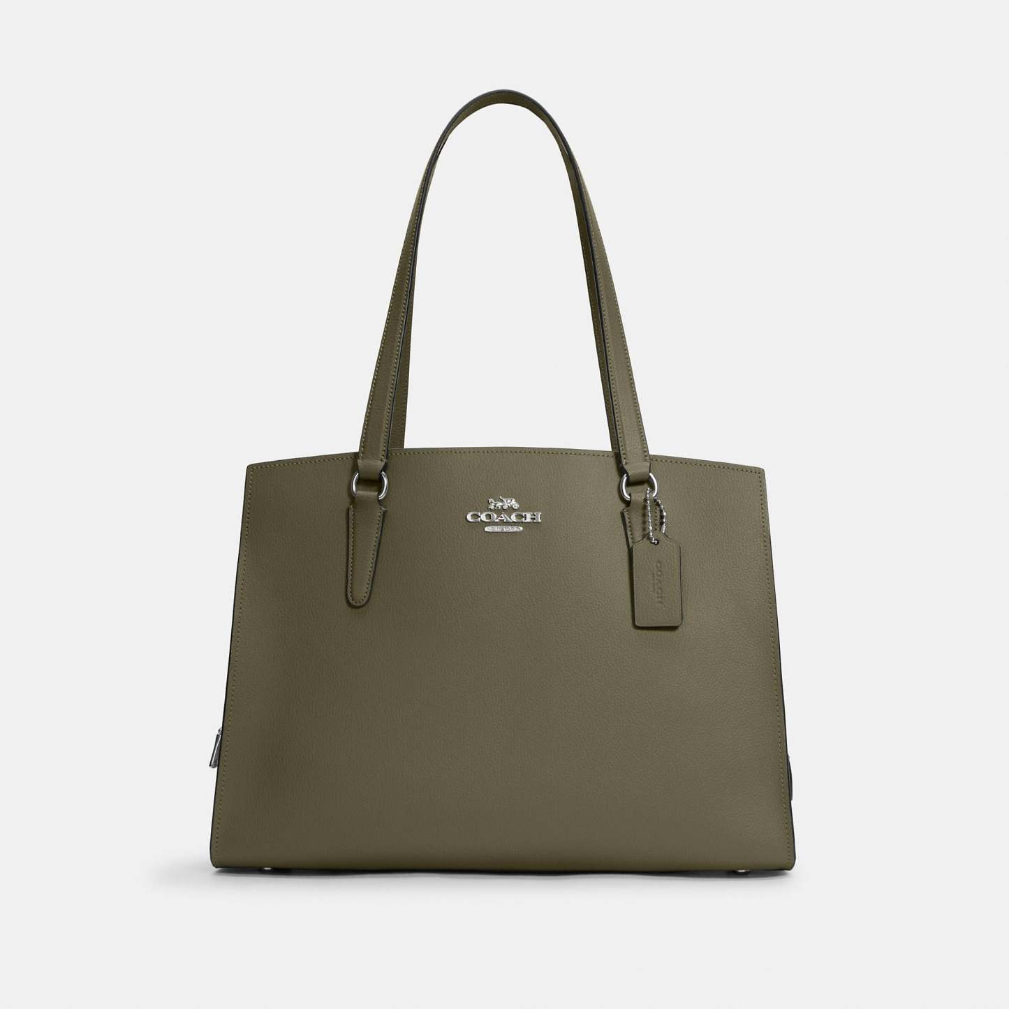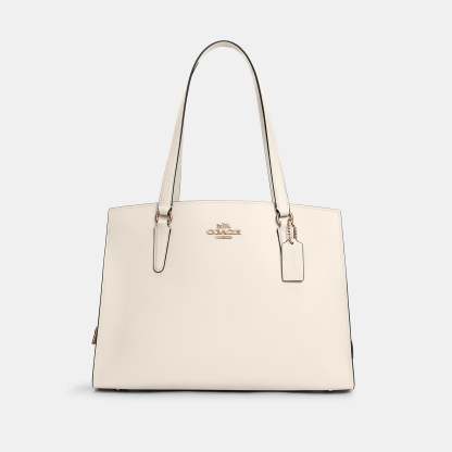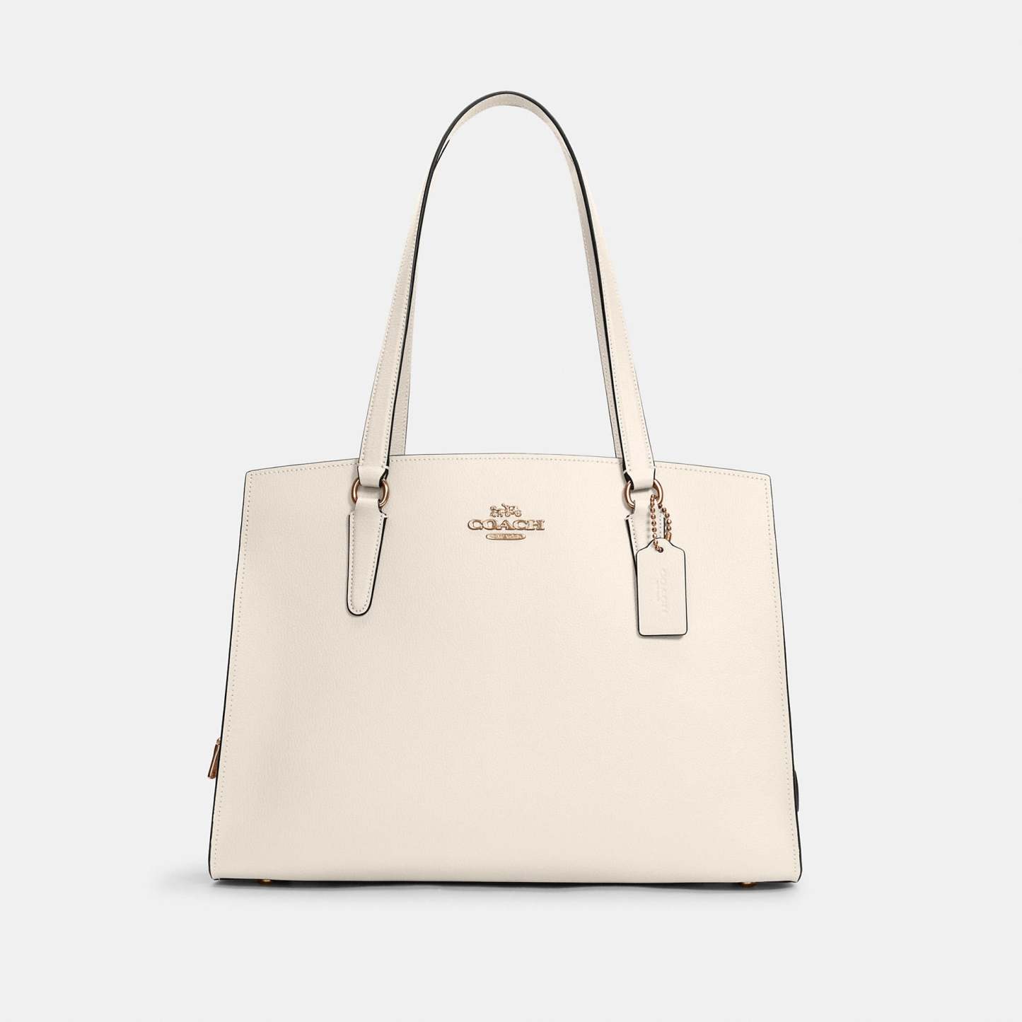Double face crossgrain leather Fits a 15 laptop Inside cell phone and multifunction pockets Zip closure fabric lining Side open compartments Handles with 10 drop Four protective feet at base 15 3/4 (L) x 11 1/2 (H) x 6 (W) Style No. C4077 | Outlet Tatum Carryall 40 - White