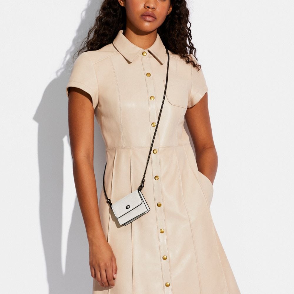 Detachable chain strap with 21" drop for shoulder or crossbody wear