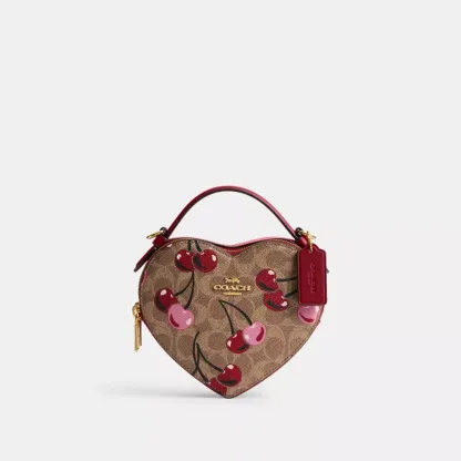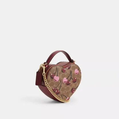 Heart Crossbody Bag In Signature Canvas With Cherry Print