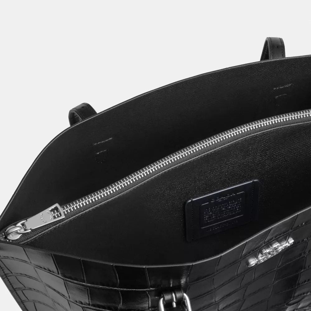 Complement your natural style with our Mollie Tote. Crafted of crocodile-embossed leather and smooth leather, this leather tote bag for women is perfect for carrying everything from your laptop to your makeup essentials, with its spacious interior and handy pockets. It also comes with a detachable strap so you can switch how you wear it on the fly.
