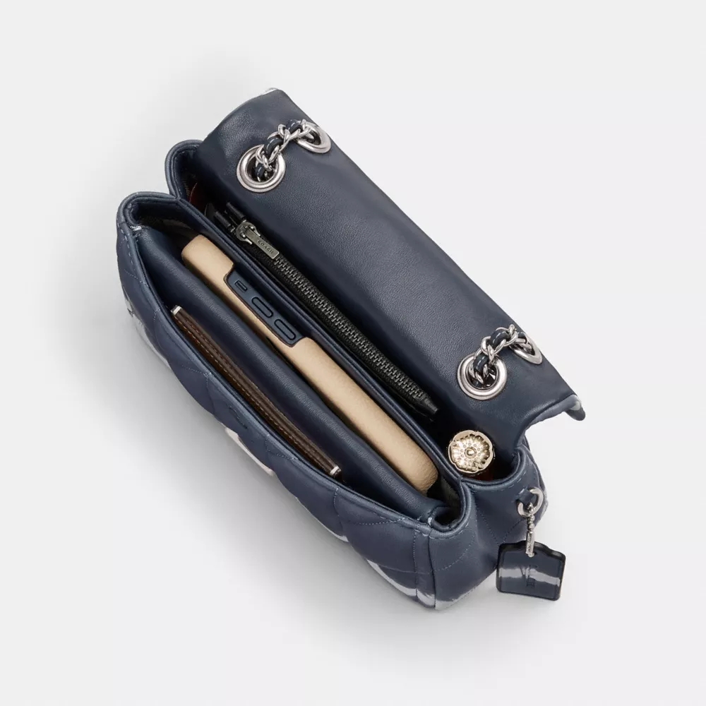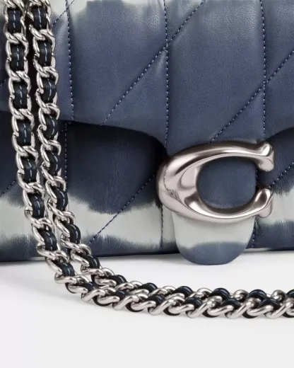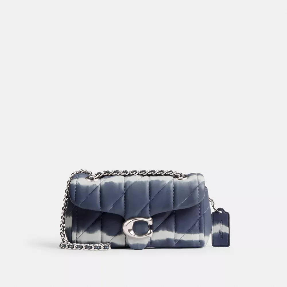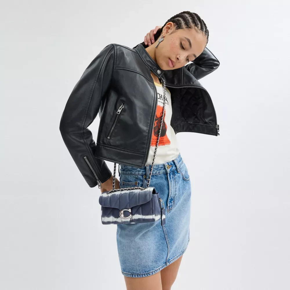 A modern take on an archival 1970s Coach design, our structured Tabby shoulder bag is crafted of quilted plush, ultra-soft nappa leather that’s specially tie-dyed with our sophisticated spin on the classic pattern. Slightly smaller than the 26, the petite 20 features a long leather chain strap to wear crossbody or double up for a shorter, dressier look. It’s finished with our Signature hardware for an iconic touch.