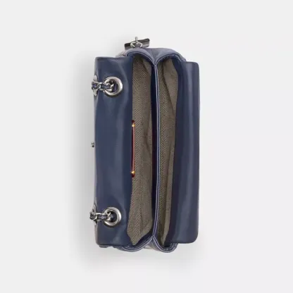 - Chain strap with 21 1/2" drop for shoulder or crossbody wear